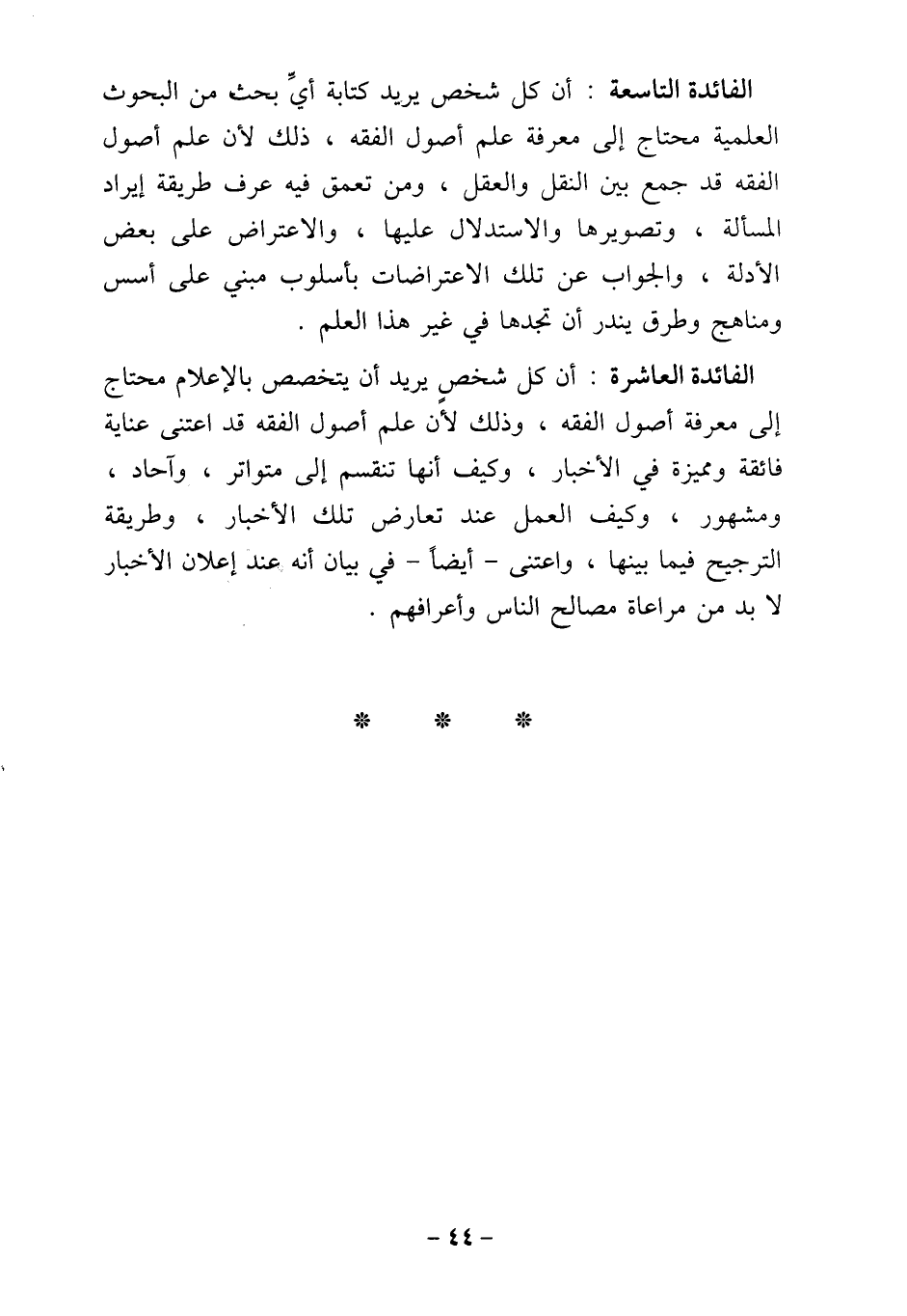 الفائدة التاسعة: أن كل شخص يريد كتابة أيَّ بحث من البحوث
