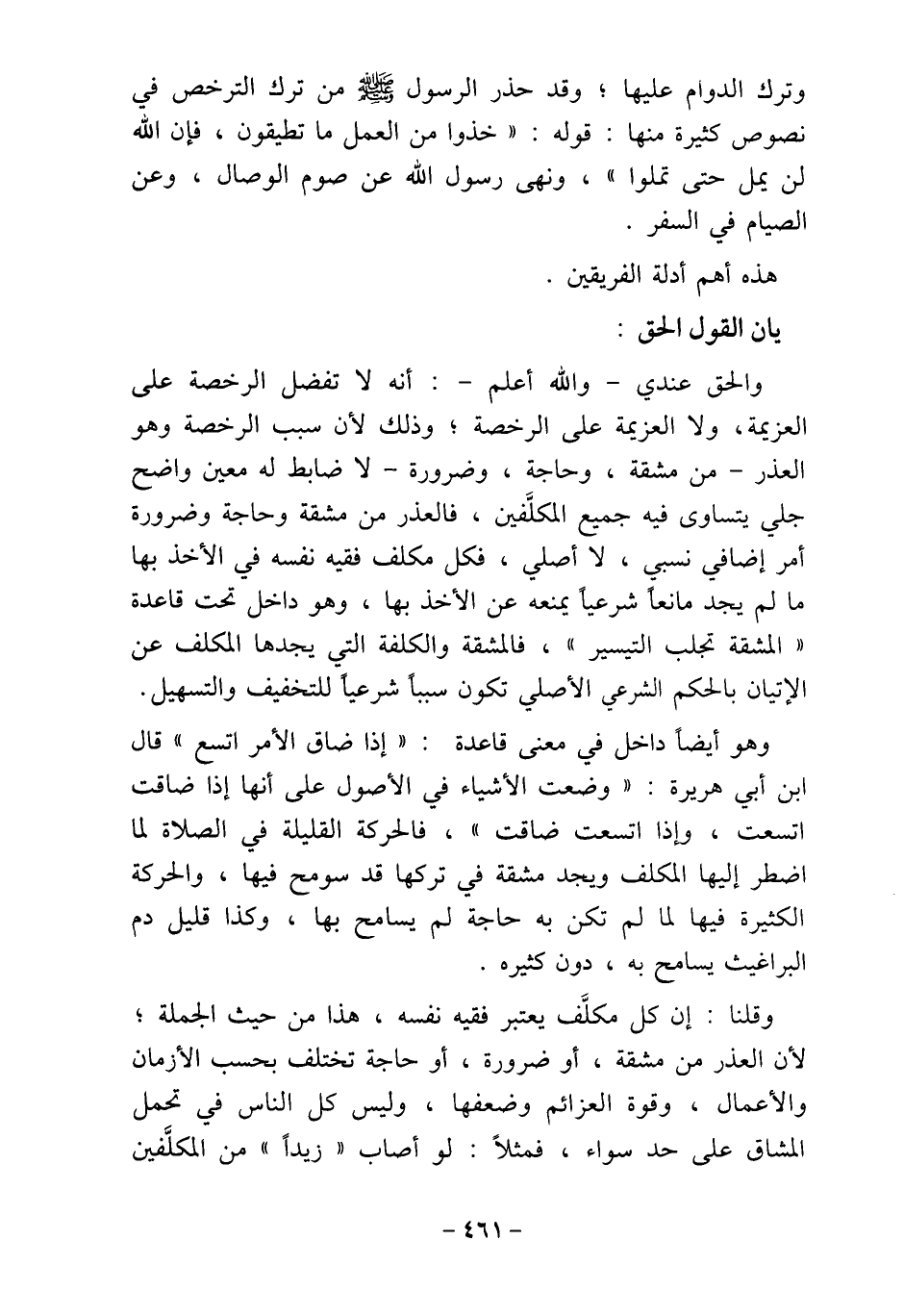 " المشقة تجلب التيسير "، فالمشقة والكلفة التي يجدها المكلف عن