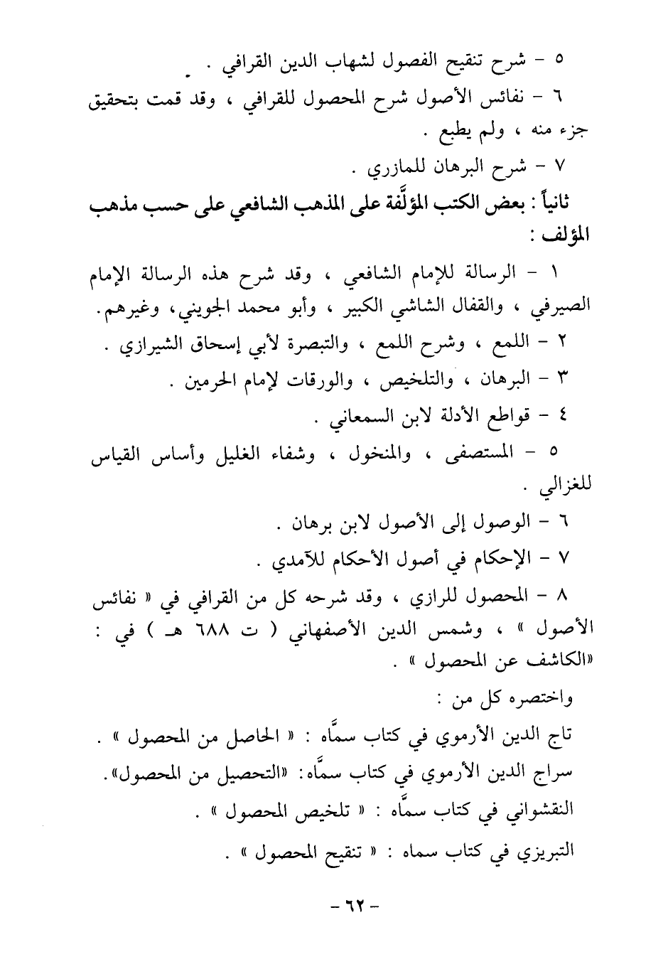 8 - المحصول للرازي، وقد شرحه كل من القرافي في " نفائس