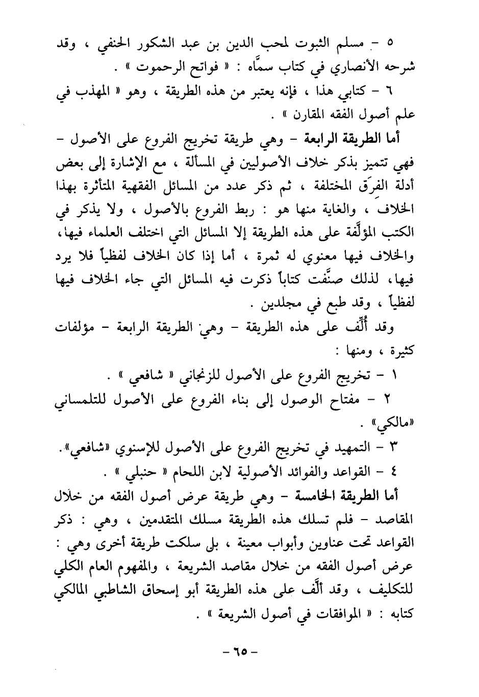 أما الطريقة الخامسة - وهي طريقة عرض أصول الفقه من خلال