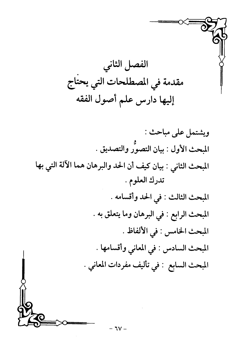 الفصل الثاني مقدمة في المصطلحات التي يحتاج إليها دارس علم أصول الفقه
