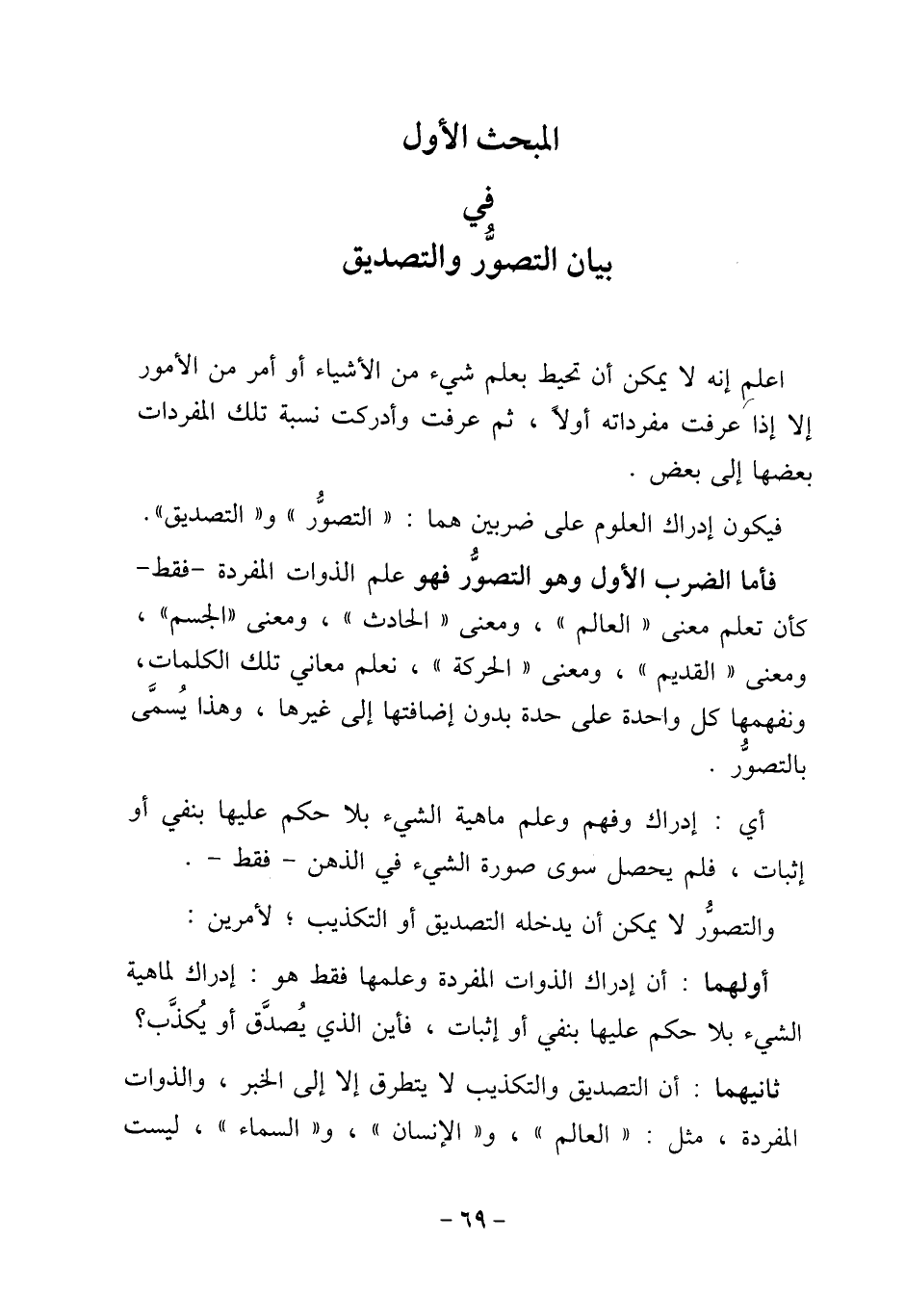 إثبات، فلم يحصل سوى صورة الشيء في الذهن - فقط -.