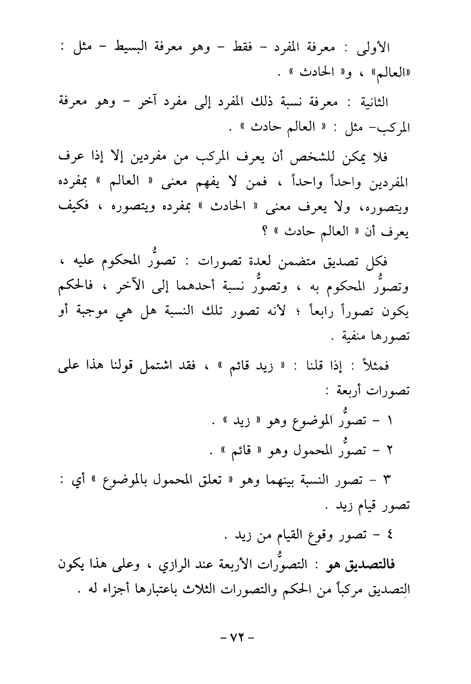 فكل تصديق متضمن لعدة تصورات: تصوُّر المحكوم عليه،
