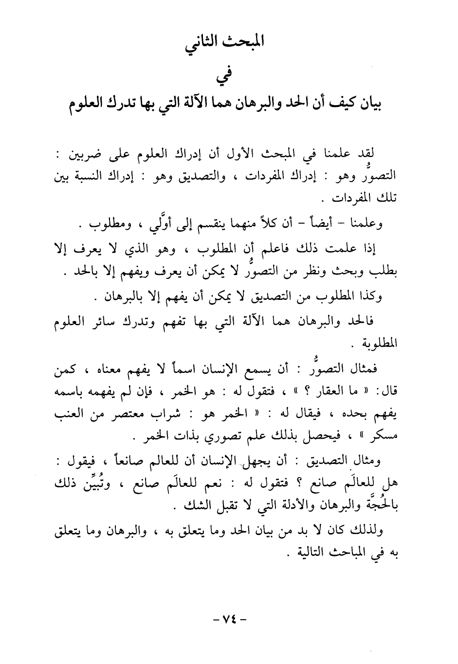 ولذلك كان لا بد من بيان الحد وما يتعلق به، والبرهان وما يتعلق