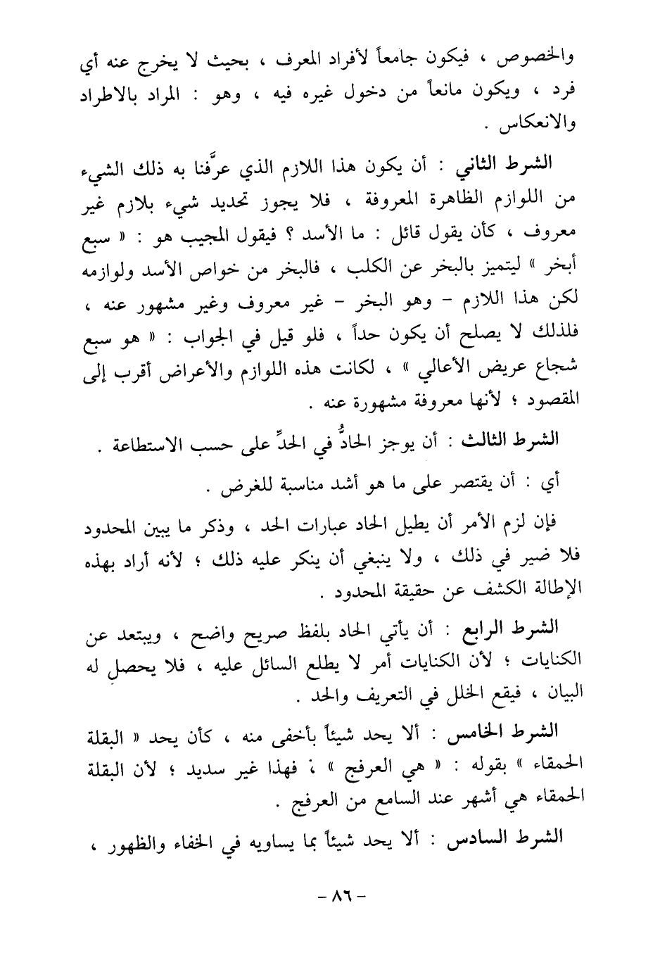 فإن لزم الأمر أن يطيل الحاد عبارات الحد، وذكر ما يبين المحدود