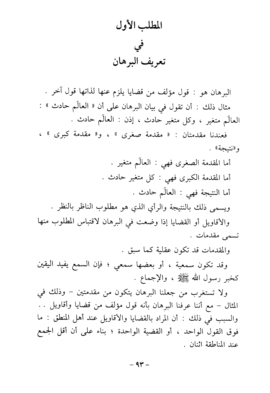 المطلب الأول في تعريف البرهان