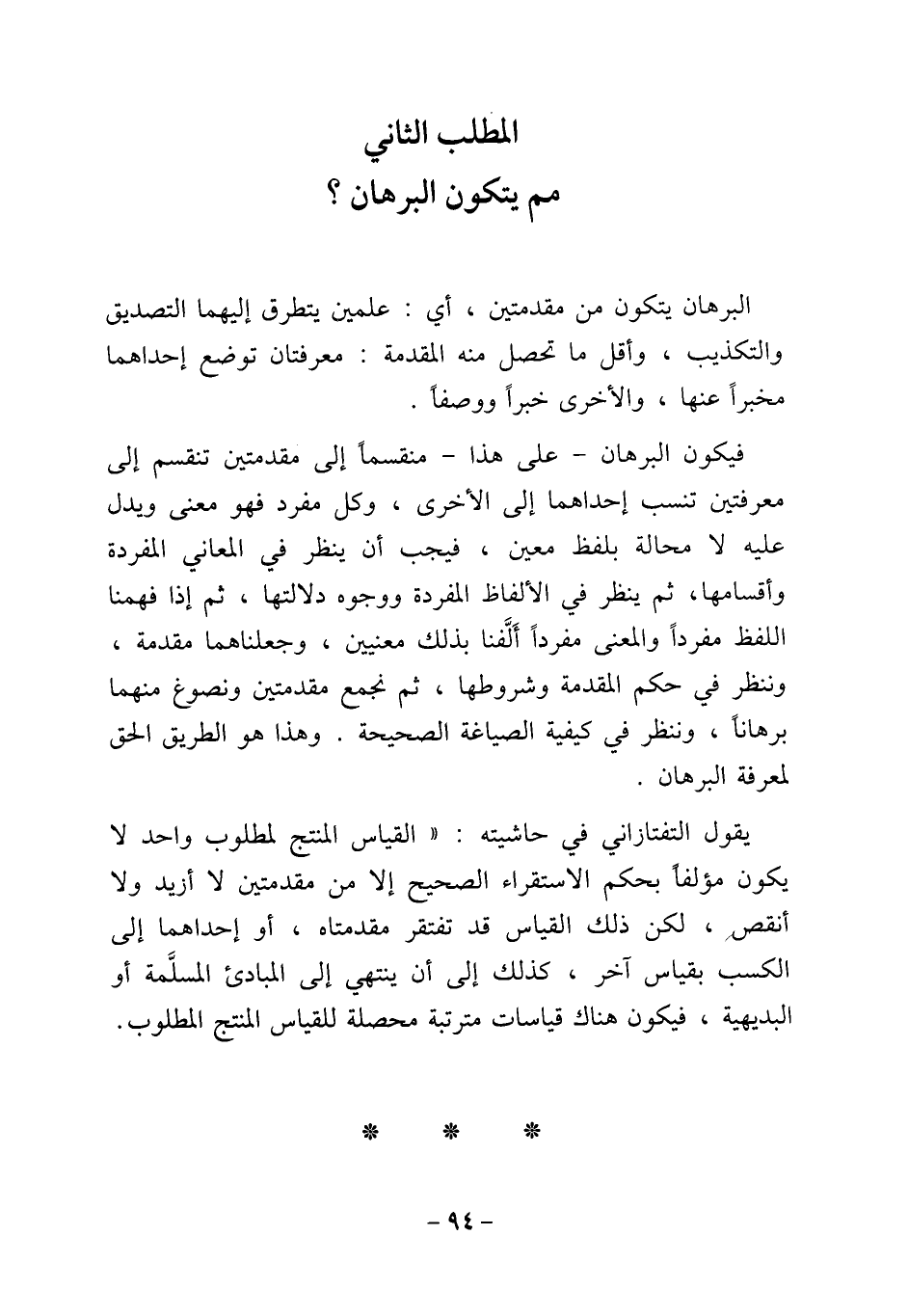 البرهان يتكون من مقدمتين، أي: علمين يتطرق إليهما التصديق