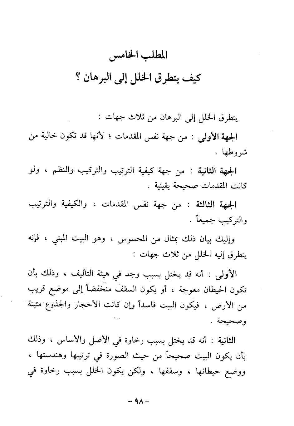 المطلب الخامس كيف يتطرق الخلل إلى البرهان؟