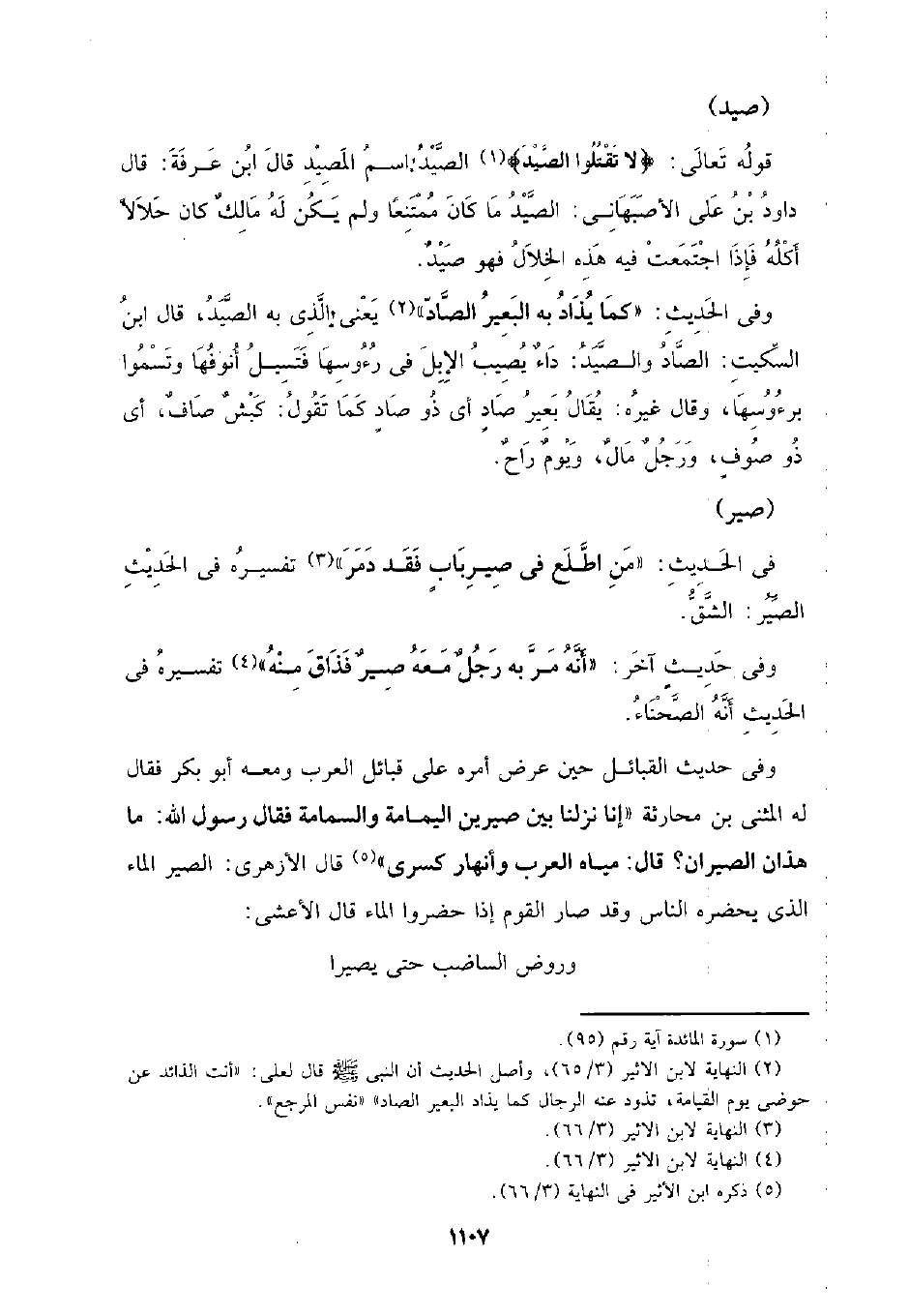 وفي حديث القبائل حين عرض أمره على قبائل العرب ومعه أبو بكر فقال له المثنى بن محارثة (إنا نزلنا بين صيرين اليمامة والسمامة فقال رسول الله: ما هذا الصيران؟ قال: مياه العرب وأنهار كسرى) قال الأزهري: الصير الماء الذي يحضره الناس وقد صار القوم إذا حضروا الماء قال الأعشى: