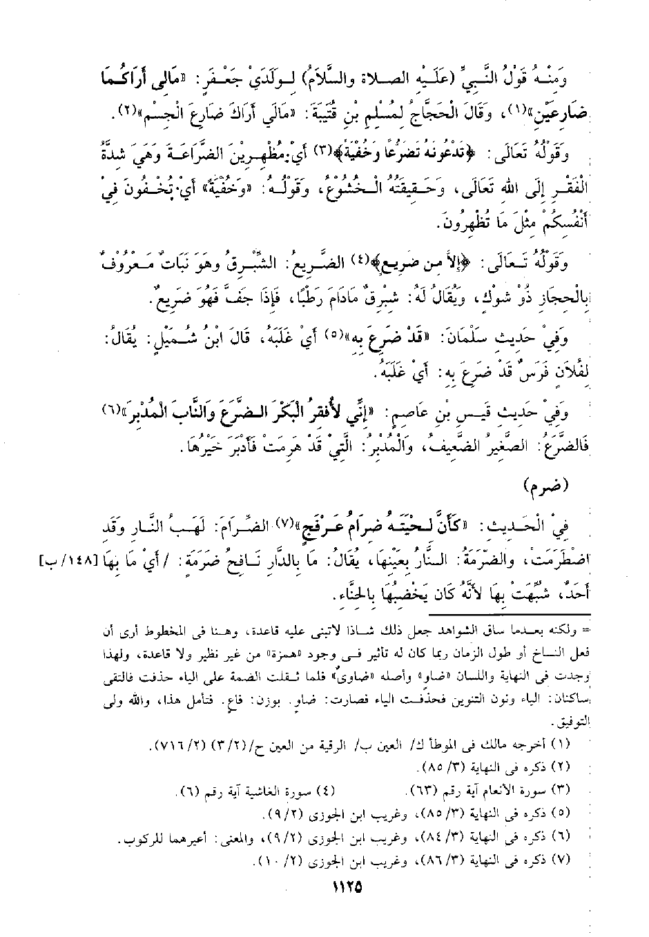 ومنه قول النبي (عليه الصلاة والسلام) لولدي جعفر: (مالي أراكما ضارعين)، وقال الحجاج لمسلم بن قتيبة: (مالي أراك ضارع الجسم).
