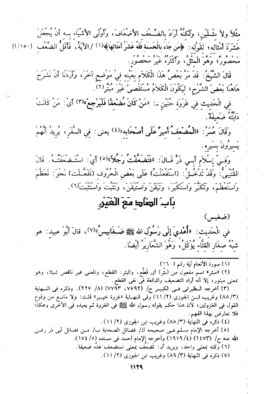 في الحديث في غزوة حنين -: (من كان مضعفًا فليرجع} أي: من كانت دابته ضعيفة.