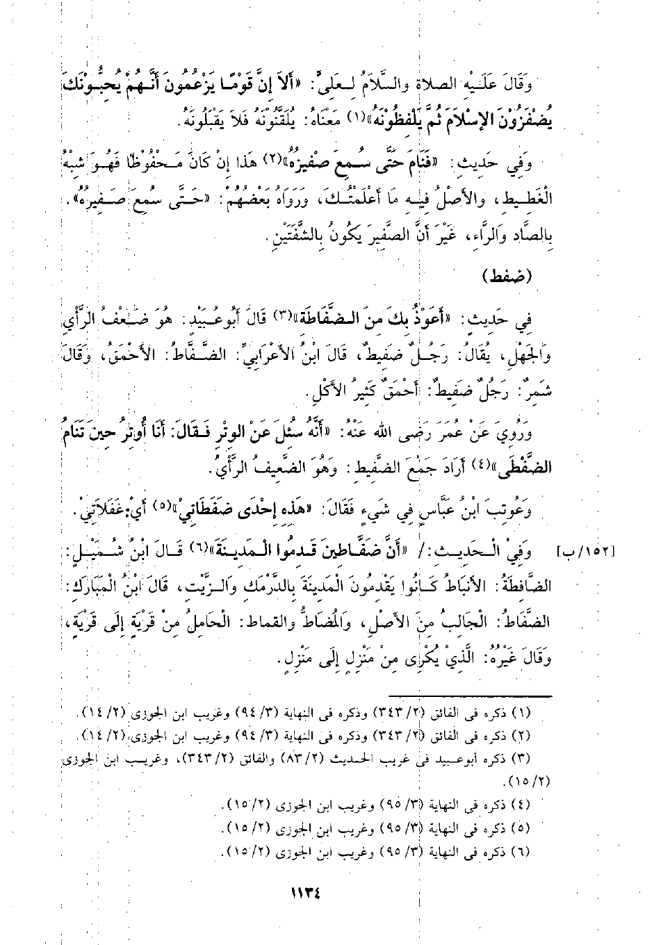 [152/ ب] وفي الحديث: / (أن ضفاطين قدموا المدينة) قال ابن شميل: الضافطة: الأنباط كانوا يقدمون المدينة بالدرمك والزيت، قال ابن المبارك: الضفاط: الجالب من الأصل، والمضاط والقماط: الحامل من قرية إلى قرية، وقال غيره: الذي يكرى من منزل إلى منزل.