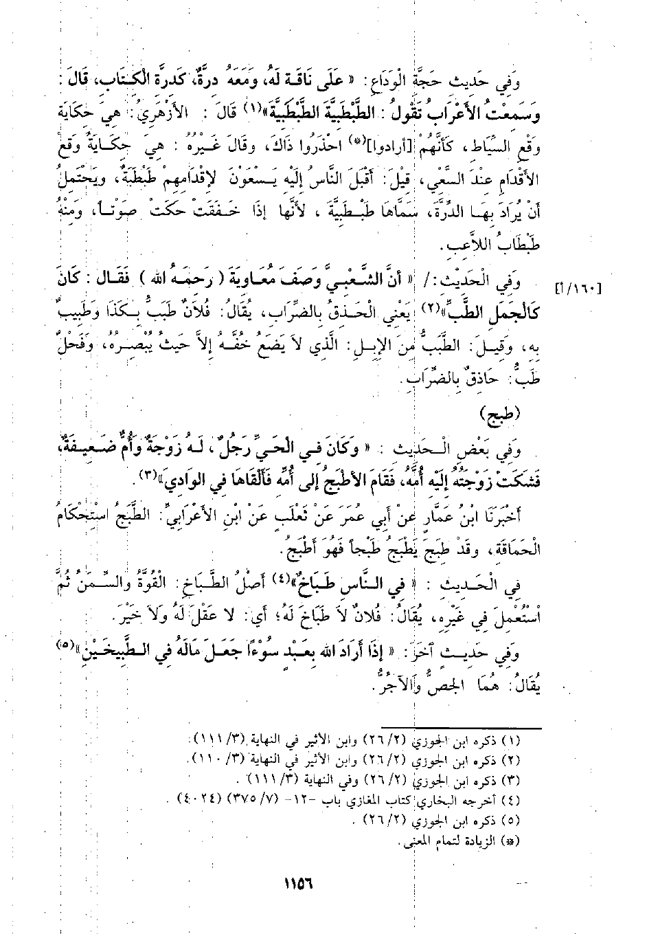 في الحديث: (في الناس طباخ) أصل الطباخ: القوة والسمن ثم استعمل في غيره، يقال: فلا لا طباخ له؛ أي: لا عقل له ولا خير.