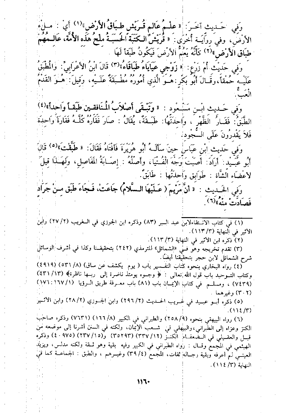 وفي حديث آخر: (علم عالم قريش طباق الأرض) أي: ملء الأرض، وفي رواية أخرى: (قريش الكتبة الحسبة ملح هذه الأمة، عالمهم طباق الأرض) كأنه يعم الأرض فيكون طبقا لها.