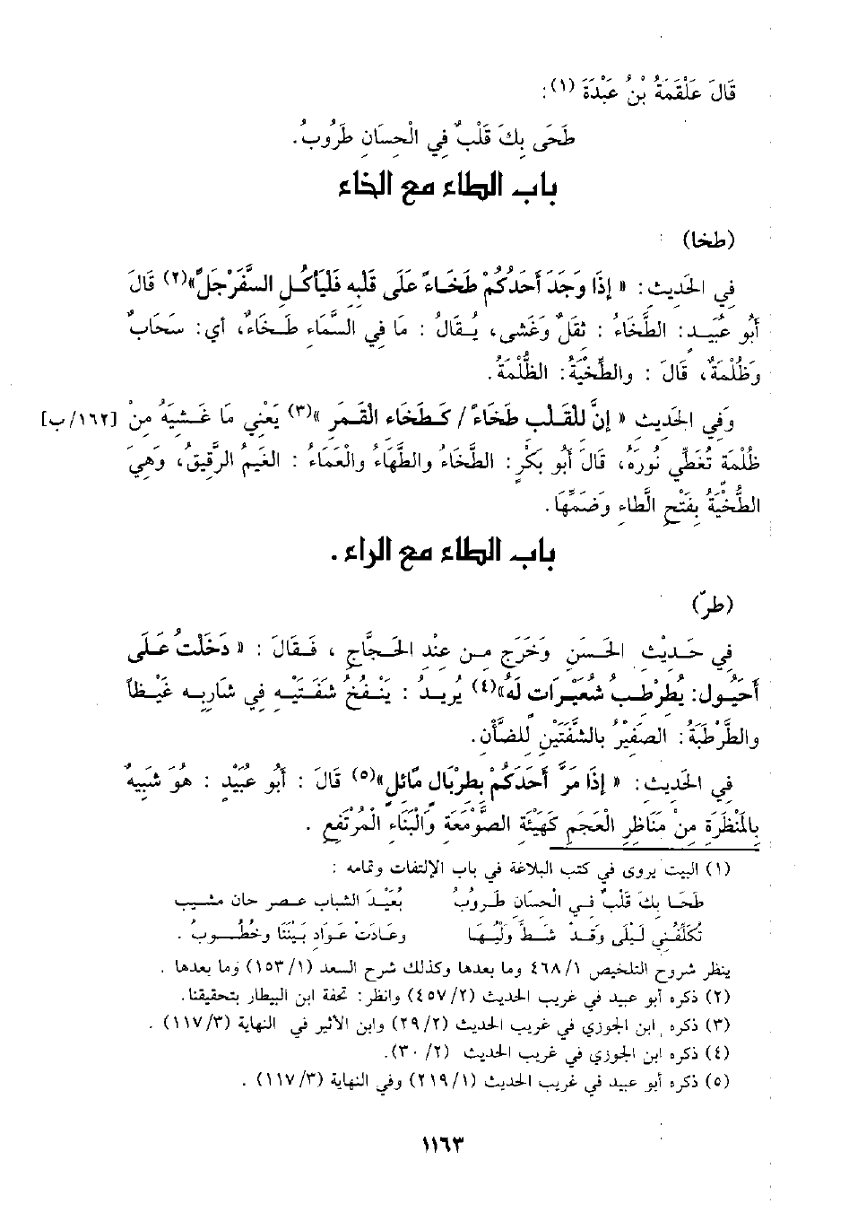 وفي الحديث: (إن للقلب طخاء/ كطخاء القمر) يعني ما غشيه من ظلمة تغطي نوره، قال أبو بكر: الطخاء والطهاء والعماء: الغيم الرقيق، وهي الطخية بفتح الطاء وضمها.