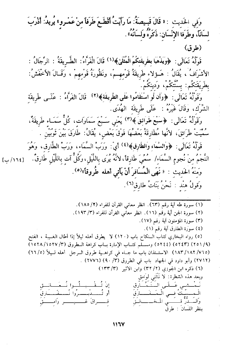 وفي الحديث: (قال قبيصة: ما رأيت أقطع طرفا من عمرو) يريد: أذرب لسانا، وطرفا الإنسان: ذكره ولسانه).