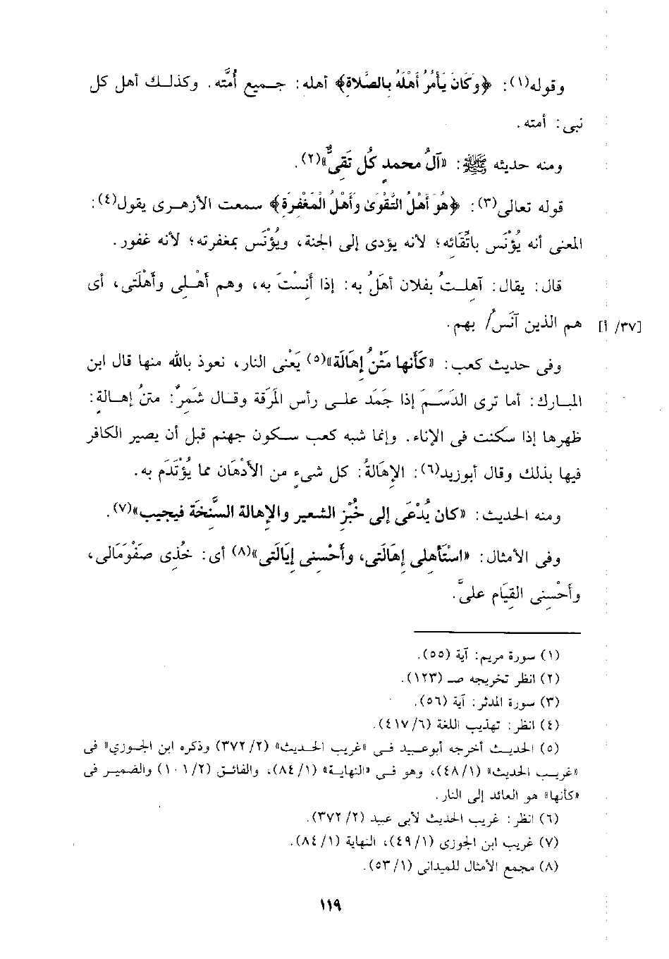قال: يقال: آهلت بفلان أهل به: إذا أنست به، وهم أهلي وأهلتي، أي هم الذين آنس/ بهم.