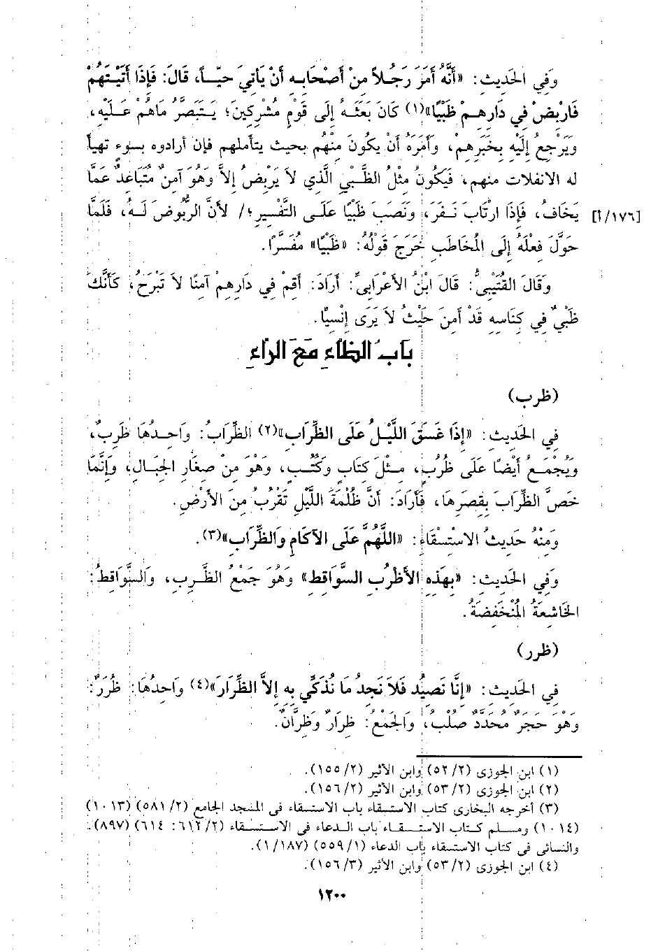 في الحديث: (إذا غسق الليل على الظراب) الظراب: واحدها ظرب، ويجمع أيضا على ظرب، مثل كتاب وكتب، وهو من صغار الجبال، وإنما خص الظراب بقصرها، فأراد: أن ظلمة الليل تقرب من الأرض.