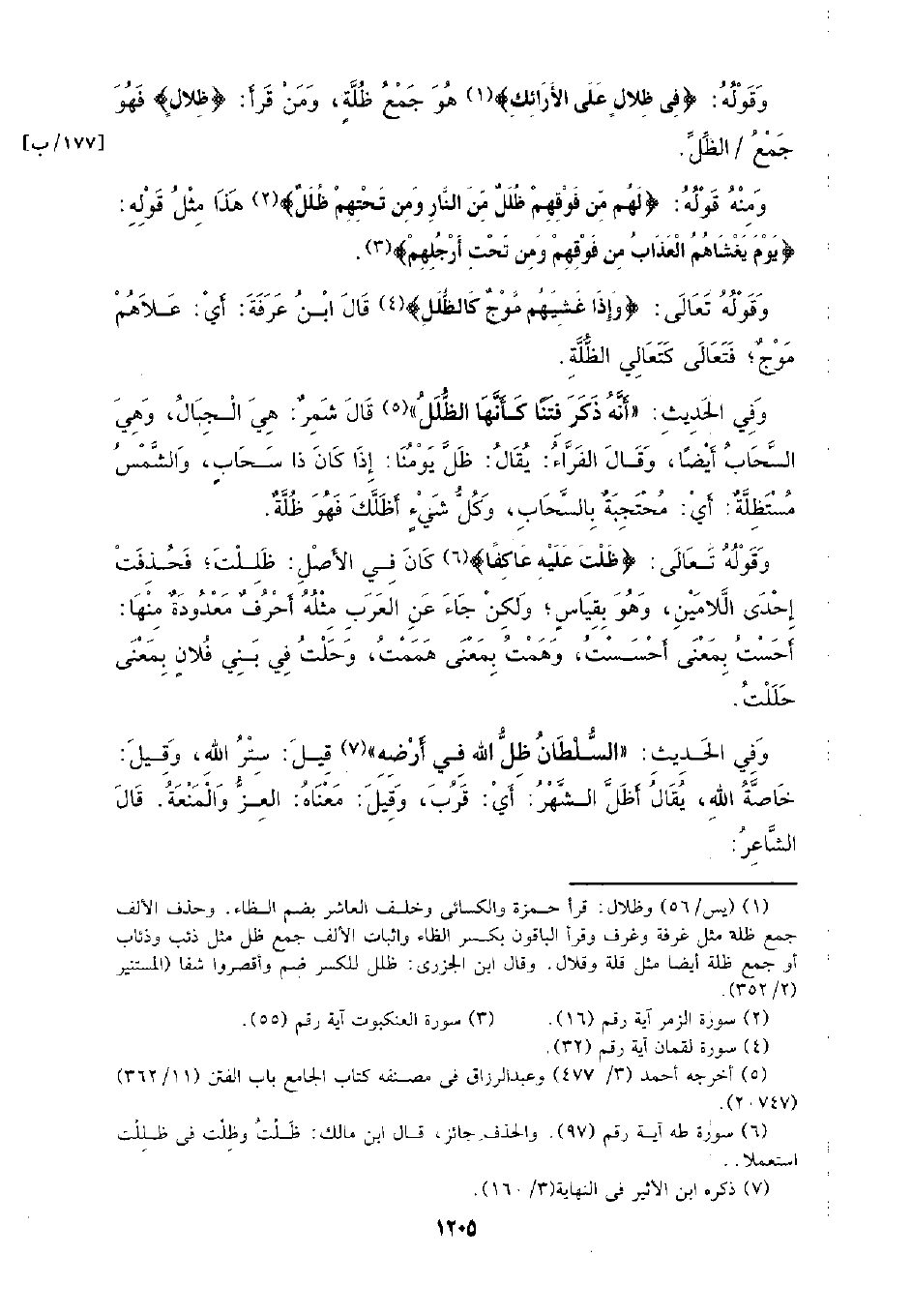 وفي الحديث: (السلطان ظل الله في أرضه) قيل: ستر الله، وقيل: خاصة الله، يقال أظل الشهر: أي: قرب، وقيل: معناه: العز والنعمة. قال الشاعر:
