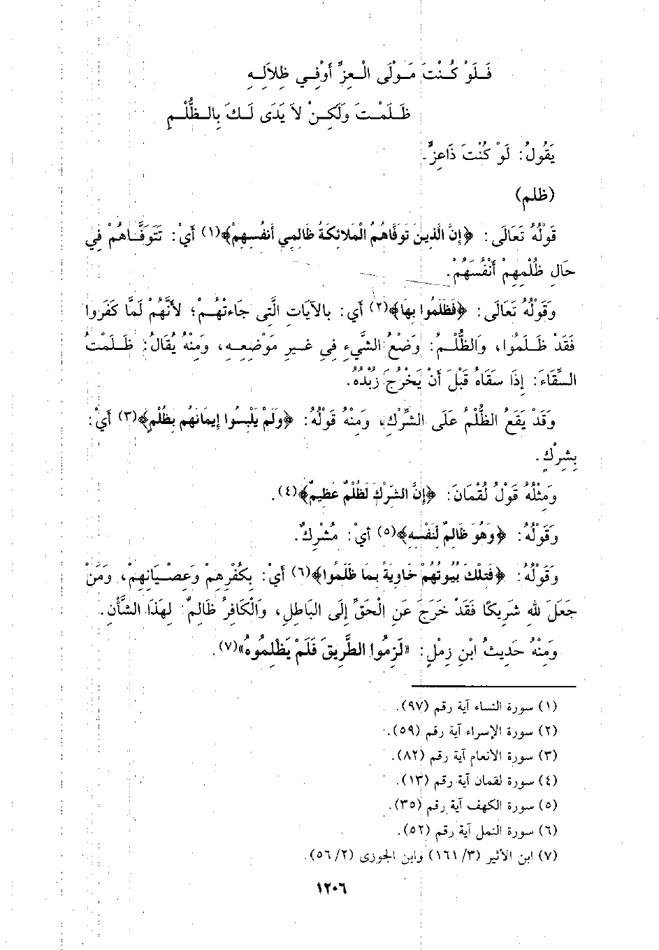 ومنه حديث ابن زمل: (لزموا الطريق فلم يظلموه).