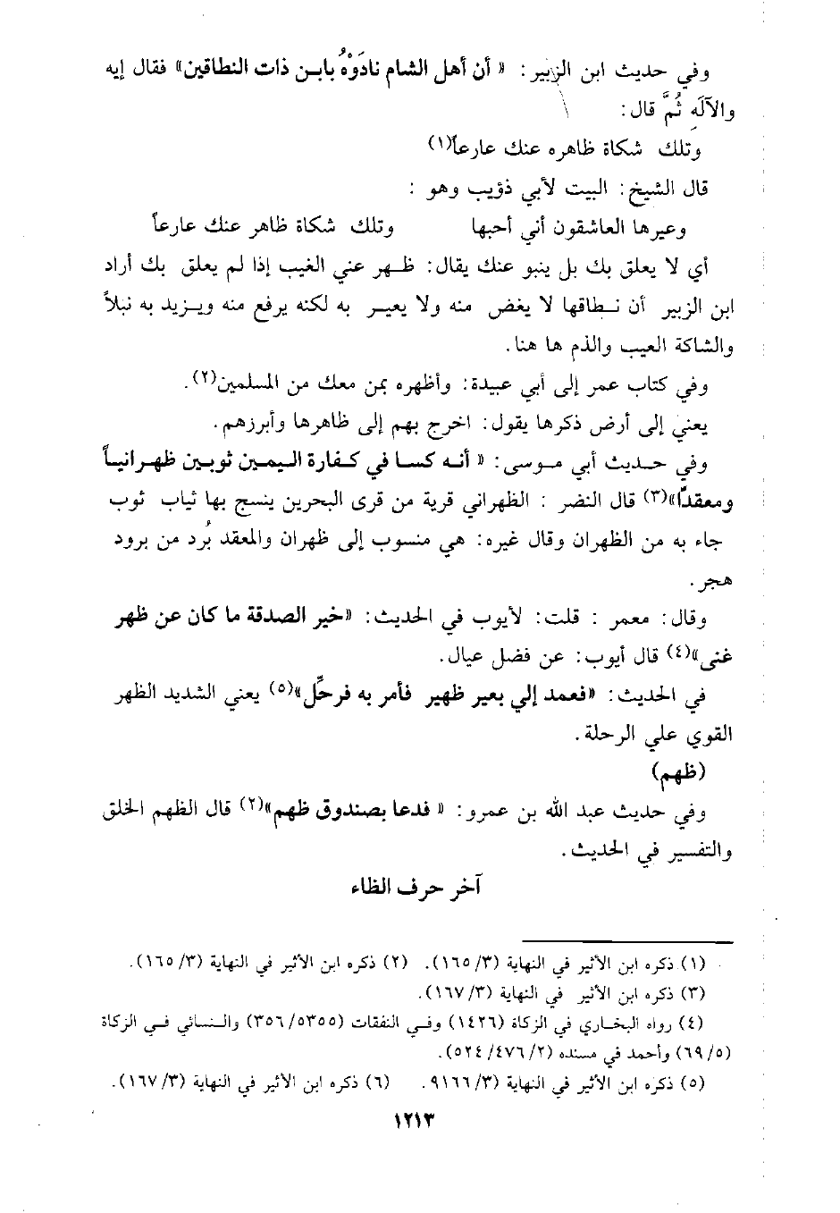 وفي حديث عبد الله بن عمرو: (فدعا بصندوق ظهم) قال للظهم الخلق والتفسير في الحديث.