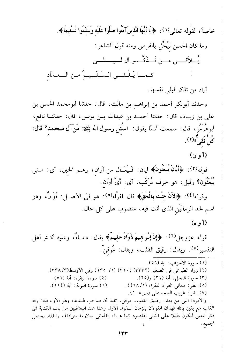 قوله عز وجل: {إن إبراهيم لأواه حليم} يقال: دعاء، وعليه أكثر أهل التفسير. ويقال: رقيق القلب، ويقال: موقن.