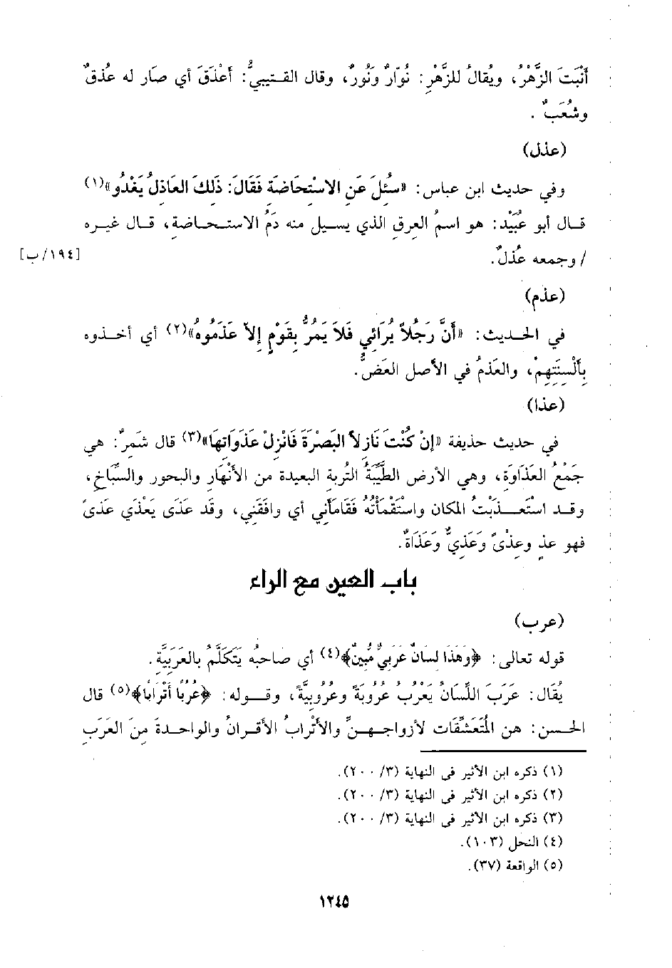في حديث حذيفة (إن كنت نازلا البصرة فأنزل عذواتها) قال شمر: هي جمع العذاوة، وفي الأرض الطبية التربة البعيدة من الأنهار والبحور والسباخ، وقد استعذبت المكان واستقمأته فقامأني أي وافقني، وقد عذى يعذي عذى فهو عذ وعذى وعذي وعذاة.