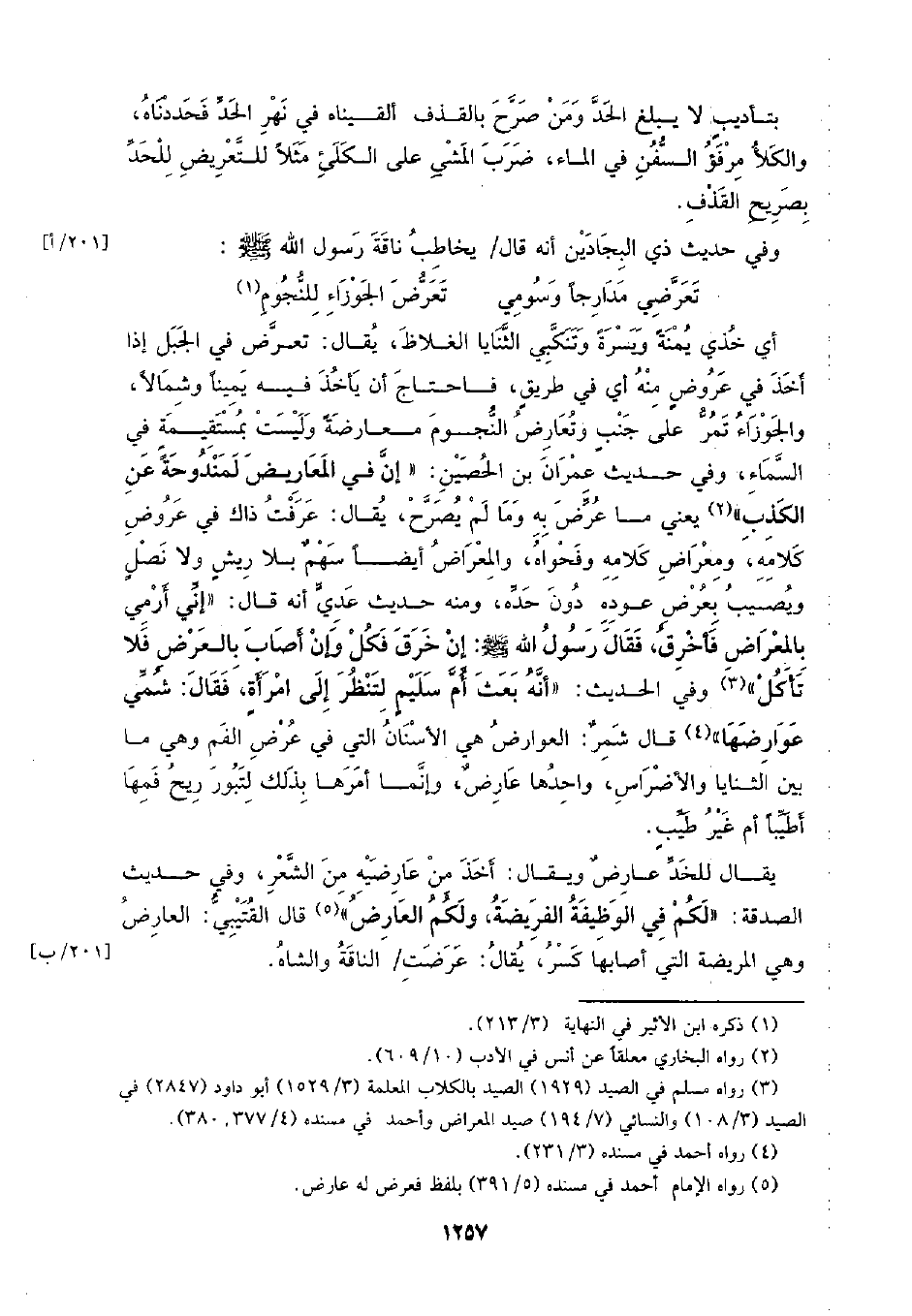 بتأديب لا يبلغ الحد ومن صرح بالقذف ألقيناه في نهر الحد فحددناه، والكلأ مرفؤ السفن في الماء، ضرب المشي على الكلئ مثلا للتعريض للحد بصريح القذف.