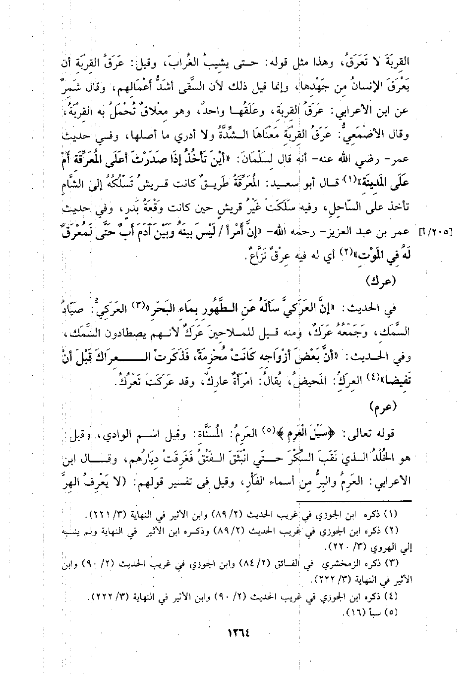 في الحديث: (إن العركي سأله عن الطهور بماء البحر) العركي: صياد السمك، وجمعه عرك، ومنه قيل للملاحين عرك لأنهم يصطادون السمك، وفي الحديث: (أن بعض أزواجه كانت محرمة، فذكرت العراك قبل أن تفيضا) العرك/ المحيض، يقال: امرأة عارك، وقد عركت تعرك.