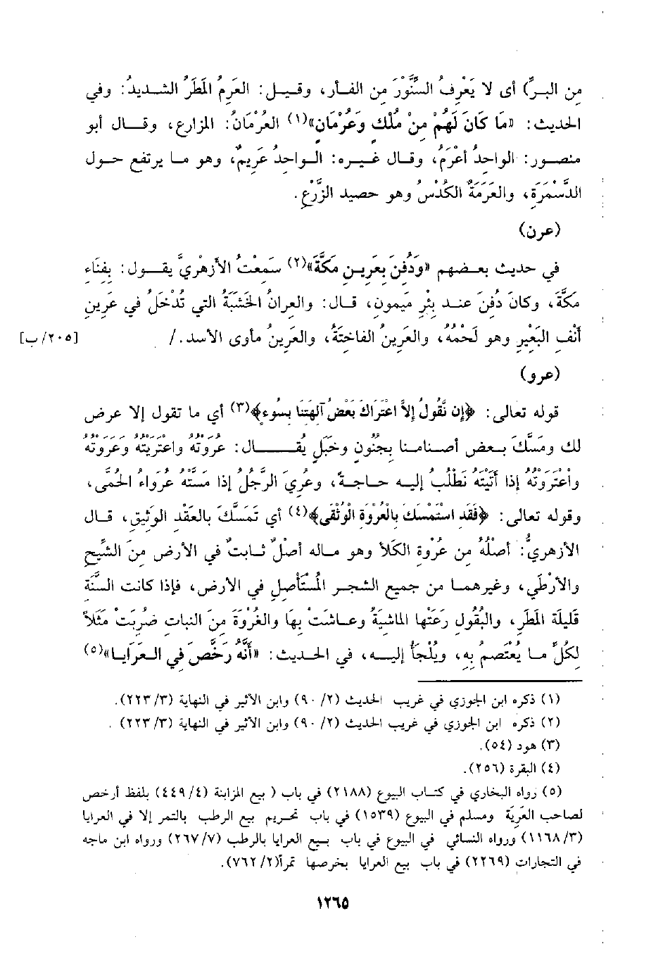 قوله تعالى: {إن نقول إلا اعتراك بعض آلهتنا بسوء} أي ما تقول إلا عرض لم ومسك بعض أصنامنا بجنون وخبل يقال: عروته واعتريته وعروته واعتروته إذا أتيته نطلب إليه حاجة، وعري الرجل إذا مسته عرواء الحمى، وقوله تعالى: {فقد استمسك بالعورة الوثقى} أي تماسك بالعقد الوثيق، قال الأزهري: أصله من عروة الكلأ وهو ماله أصل ثابت في الأرض من الشيح والأرطي، وغيرهما من جميع الشجر المستأصل في الأرض، فإذا كانت السنة قليلة المطر، والبقول رعتها الماشية وعاشت بها والغروة من النبات ضربت مثلا لكل ما يعتصم به، ويلجأ إليه، في الحديث: (أنه رخص في العرايا)