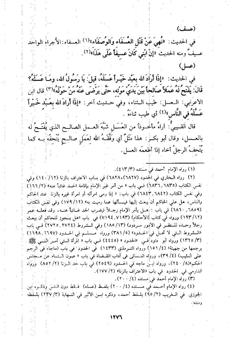 في الحديث: (نهي عن قتل العسفاء والوصفاء) العسفاء: الأجراء الواحد عسيف ومنه الحديث (إن ابني كان عسيفا على هذا).