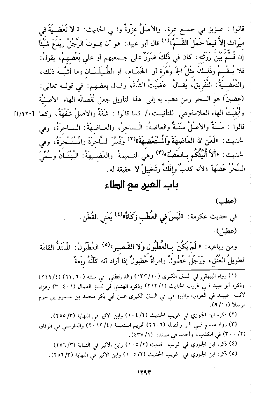 قالوا: عزيز في جمع عزة، والأصل عزوة وفي الحديث: (لا تعضية في ميراث إلا فيما حمل القسم) قال أبو عبيد: هو أن يموت الرجل ويدع شيئا إن قسم بين ورثته، كان في ذلك ضرر على جميعهم أو على بعضهم، يقول: فلا يقسم وذلك مثل الجوهرة أو الحمام، أو الطيلسان وما أشبه ذلك، والتعضية: التفريق، يقال: عضيت الشاة، وقال بعضهم: في قوله تعالى: (عضين) هو السحر ومن ذهب به إلى هذا التأويل جعل نقصانه الهاء الأصلية وأبقيت الهاء العلامة وهي التأنيث، / كما قالوا: شفة والأصل شفهة، وكما قالوا: سنة والأصل سنة والعاضة: الساحر، والعاضهة: الساحرة: وفي الحديث: (لعن الله العاضهة والمستعضهة) وفسر الساحرة والمستسحرة، وفي الحديث: (إلا أنيئكم بالعضة) وهي النميمة والعضيهة: البهتان وسمي السحر عضها؛ لأنه كذب وإفك وتخييل لا حقيقة له.