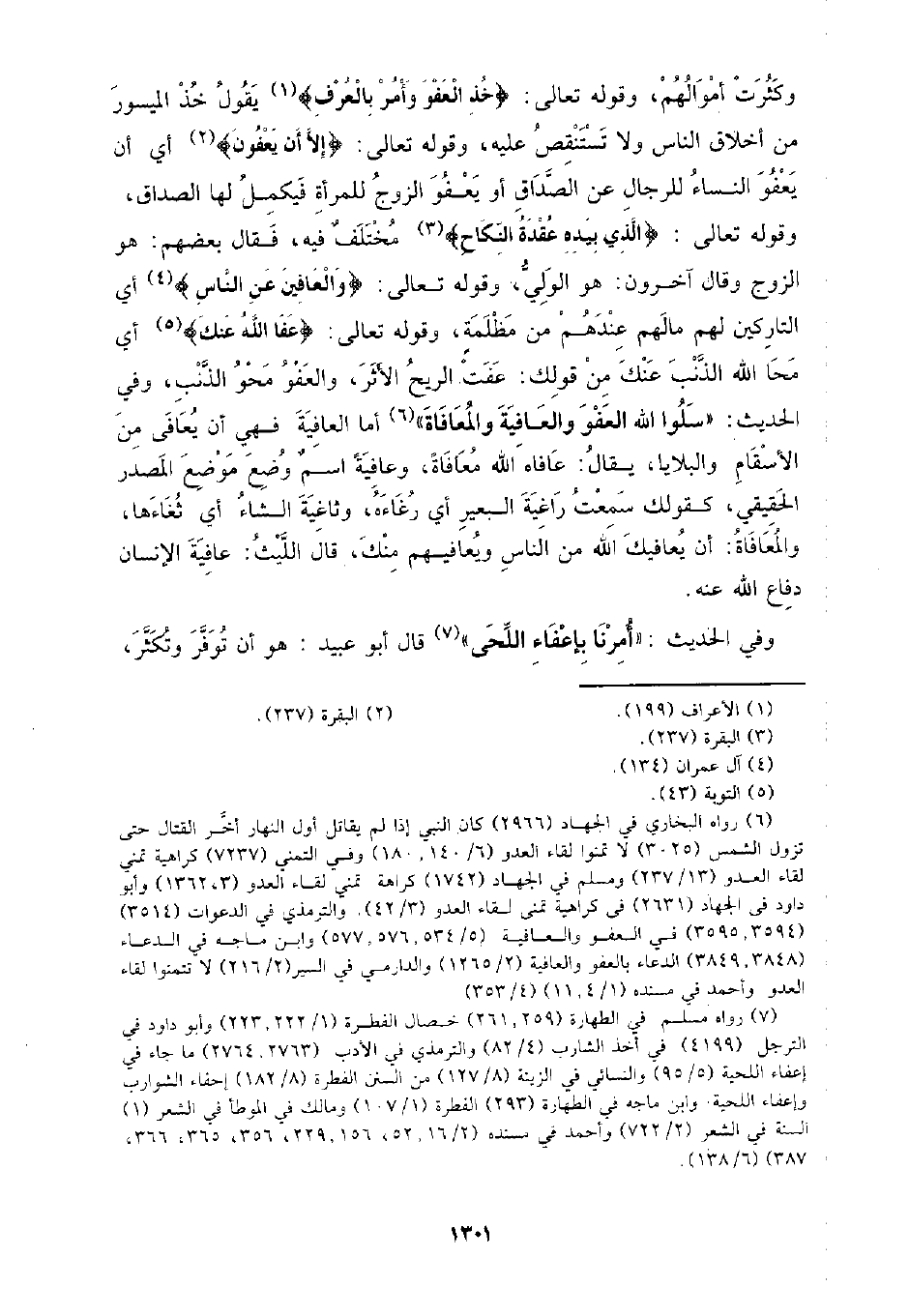 وفي الحديث: (أمرنا بإعفاء اللحى) قال أبو عبيد: هو أن توفر وتكثر،