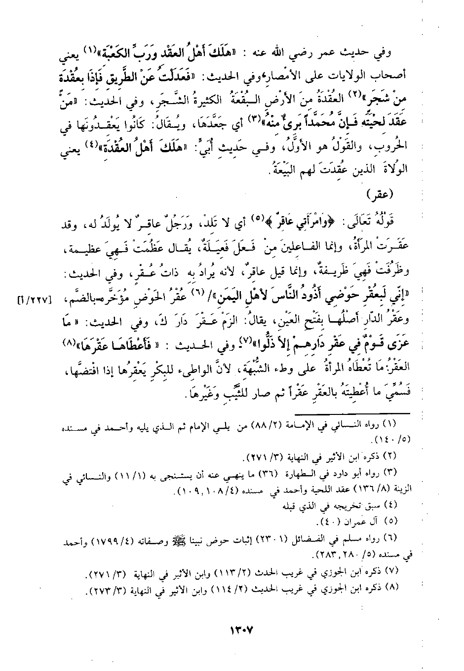 وفي حديث عمر رضي الله عنه: (هلك أهل العقد ورب الكعبة) يعني أصحاب الولايات على الأمصار، وفي الحديث: (فعدلت عن الطريق فإذا بعقدة من شجر) العقدة من الأرض البقعة الكثيرة الشجر، وفي الحديث: (من عقد لحيته فإن محمدا بريء منه) أي جعدها، ويقال: كانوا يعقدونها في الحروب، والقول هو الأول، وفي حديث أبي: (هلك أهل العقدة) يعني الولاة الذين عقدت لهم البيعة.
