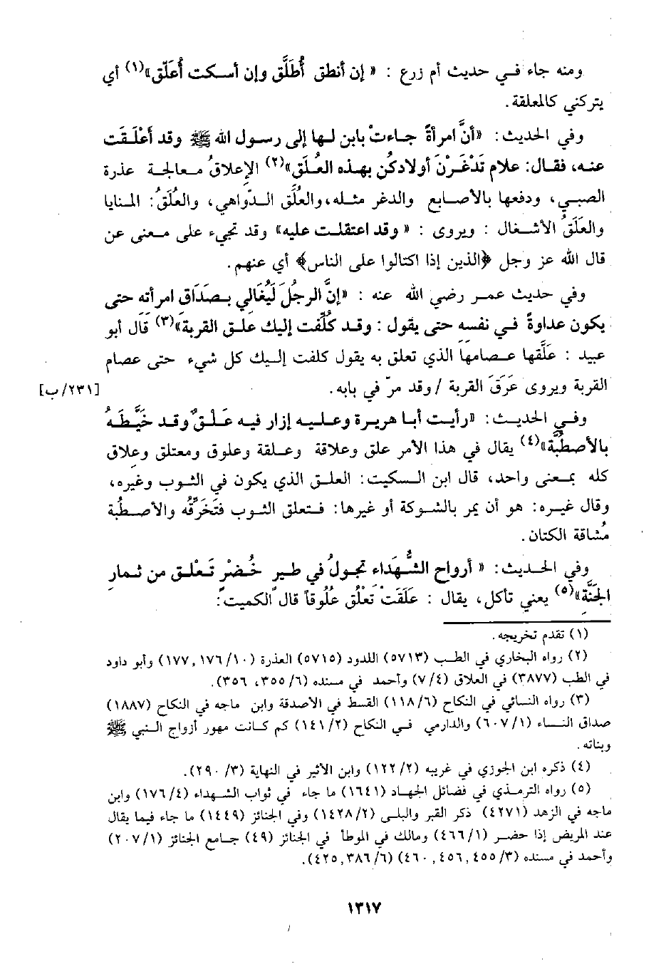 وفي الحديث: (أرواح الشهداء تجول في طير خضر تعلق من ثمار الجنة) يعني تأكل، يقال: علقت تعلق علوقا قال الكميت: