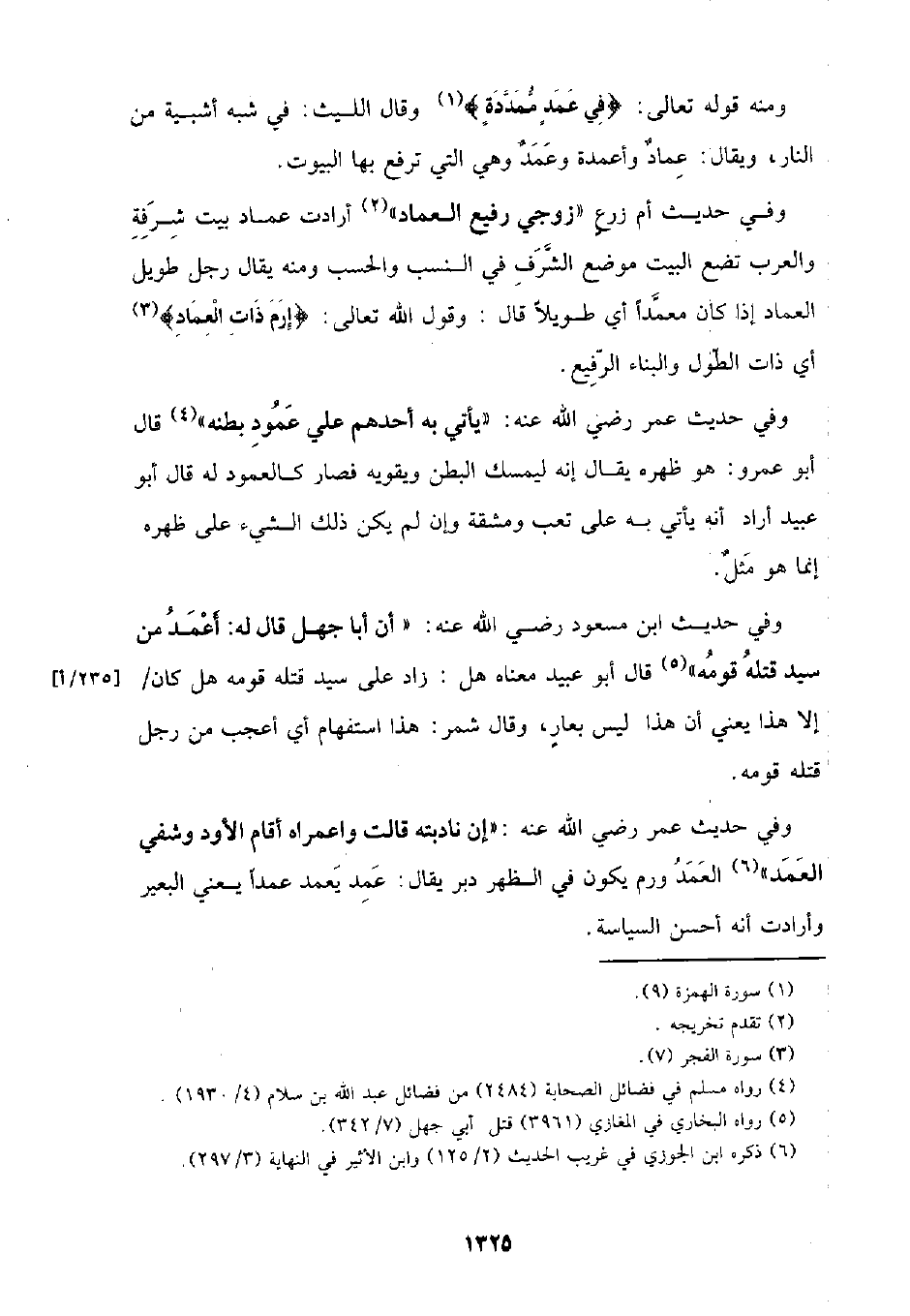 ومنه قوله تعالى: {في عمد ممددة} وقال الليث: في شبه أشبية من النار، ويقال: عماد وأعمدة وعمد وهي التي ترفع بها البيوت.