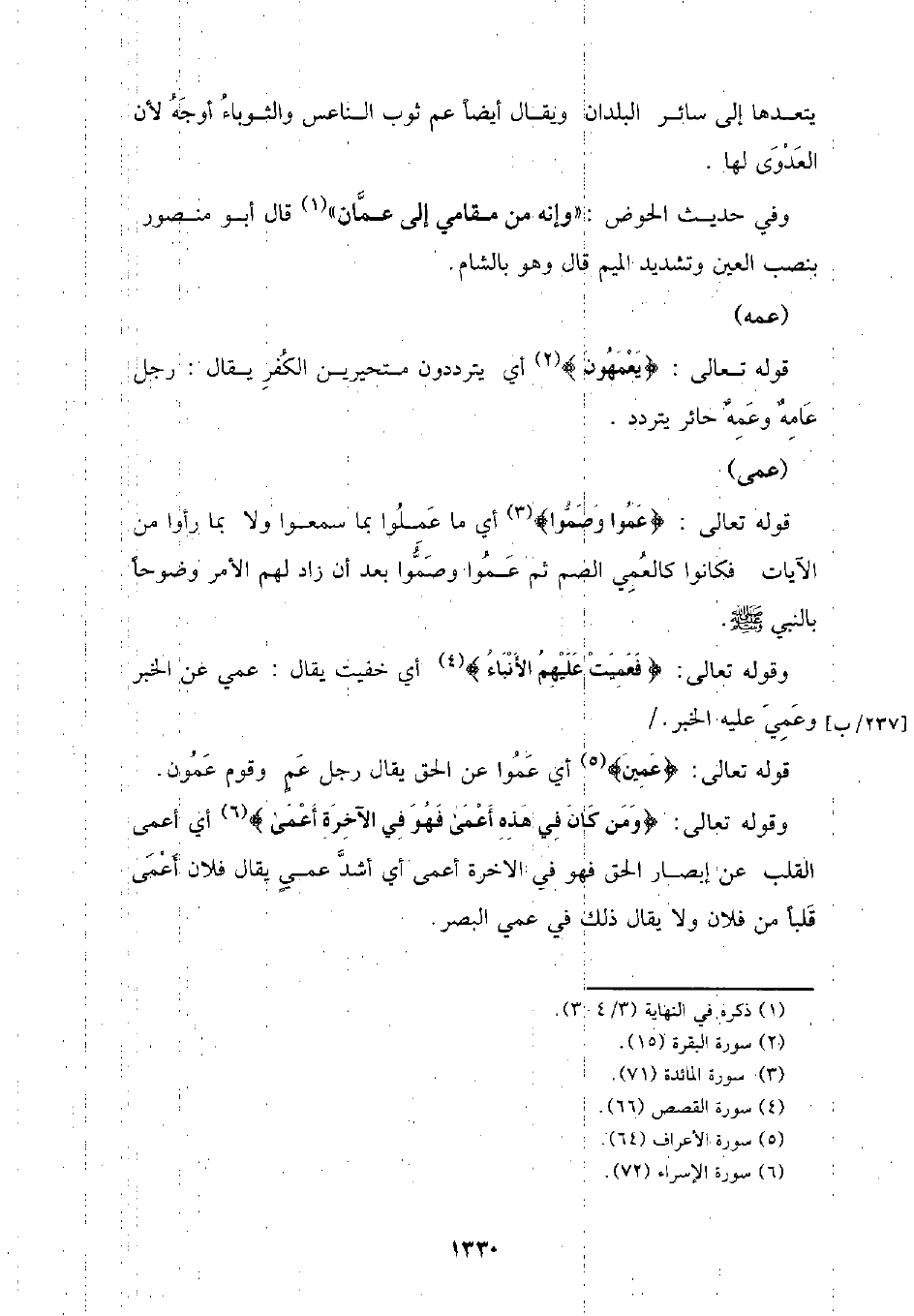 وفي حديث الحوض: (وإنه من مقامي إلى عمان) قال أبو منصور بنصب العين وتشديد الميم قال وهو بالشام.