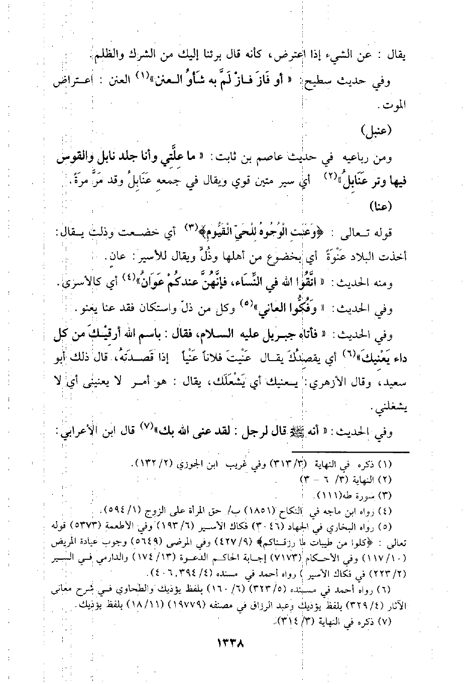 وفي الحديث: (وفكوا العاني) وكل من ذل واستكان فقد عنا يعنو.