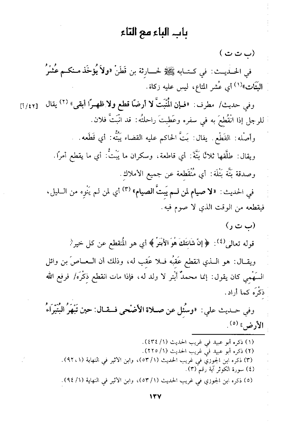 في الحديث: في كتابه - صلى الله عليه وسلم - لحارثة بن قطن (ولا يؤخذ منكم عشر البتات) أي عشر المتاع، ليس عليه زكاة.