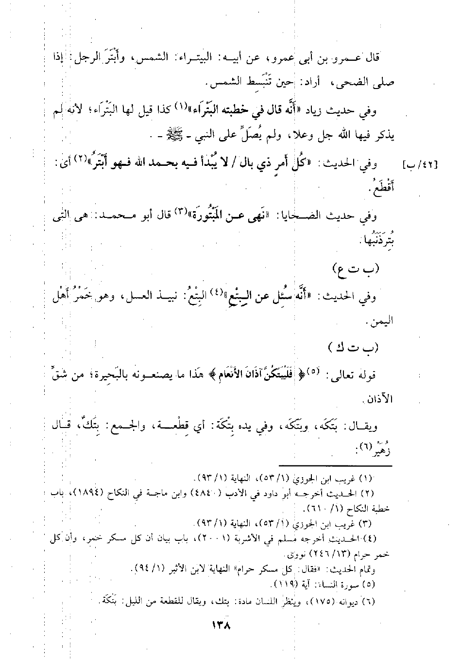 وفي حديث زياد (أنه قال في خطبته البتراء) كذا قيل لها البتراء؛ لأنه لم يذكر فيها الله جل وعلا، ولم يصل على النبي - صلى الله عليه وسلم -.