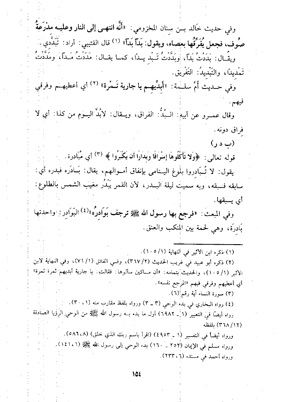 وفي حديث خالد بن سنان المخزومي: (أنه انتهى إلى النار وعليه مدرعه صوف، فجعل يفرقها بعصاه، ويقول: بدًا بدًا) قال القتيبي: أراد: تبددي.