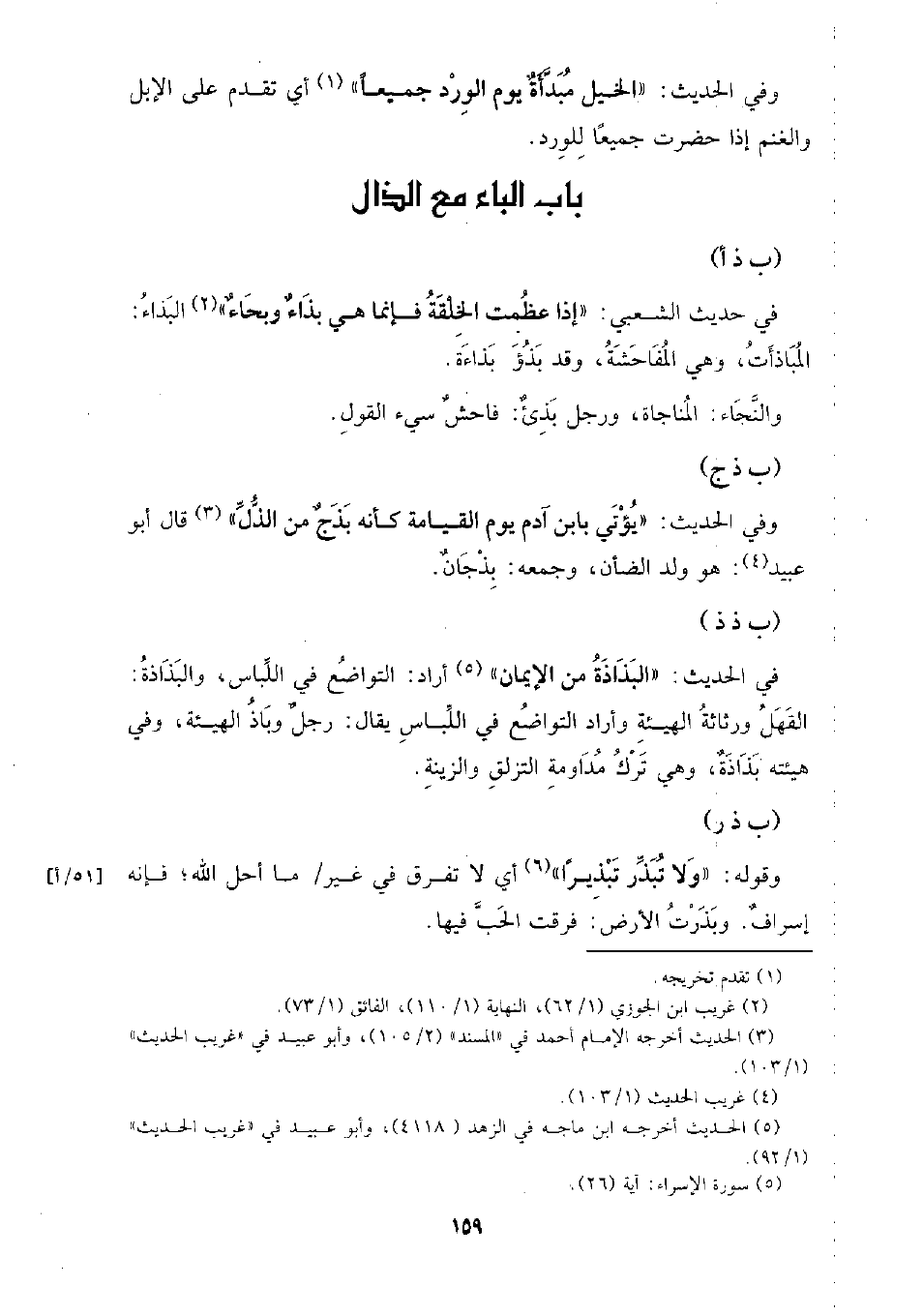 وفي الحديث: (يؤتي بابن آدم يوم القيامة كأنه بذج من الذل) قال أبو عبيد: هو ولد الضأن، وجمعه: بذجان.