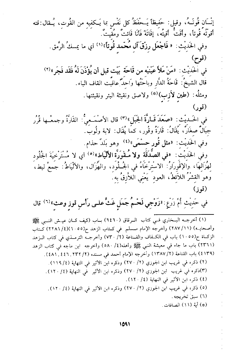 في الحديث: (صعد قارة الجبل) قال الأصمعي: القارة وجمعها قرر جبال صغار، يقال: قارة وقور، كما يقال: لابة ولوب.