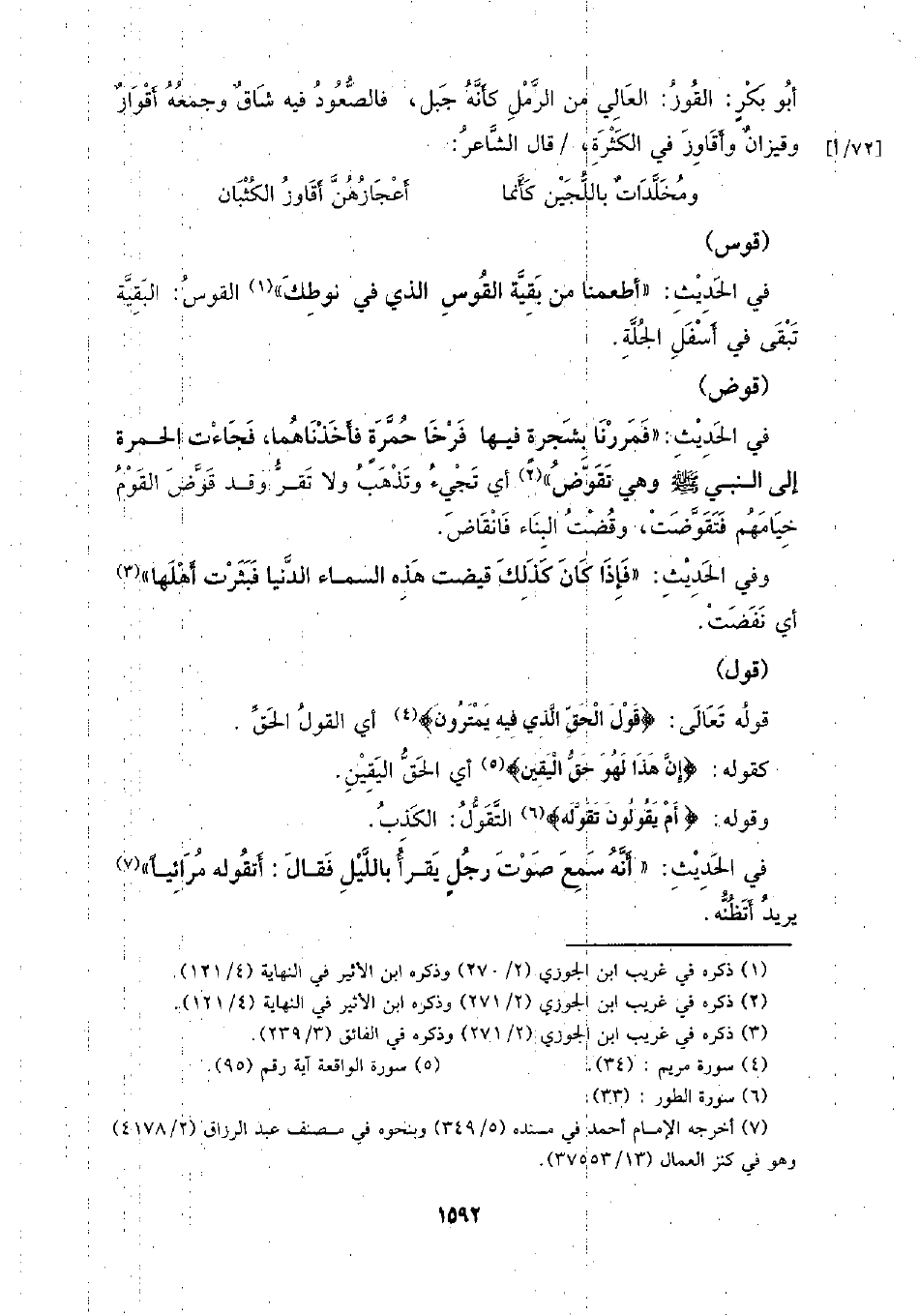في الحديث: (أطعمنا من بقية القوس الذي في نوطك) القوس: البقية تبقى في أسفل الجلة.