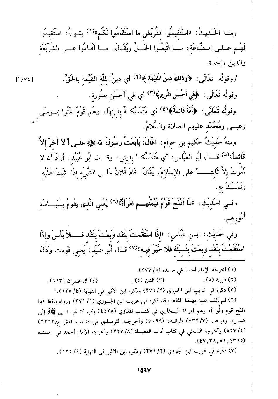 ومنه الحديث: (استقيموا لقريش ما استقاموا لكم) يقول: استقيموا لهم على الطاعة، ما اتبعوا الحق ويقال: ما أقاموا على الشريعة والدين واحدة.
