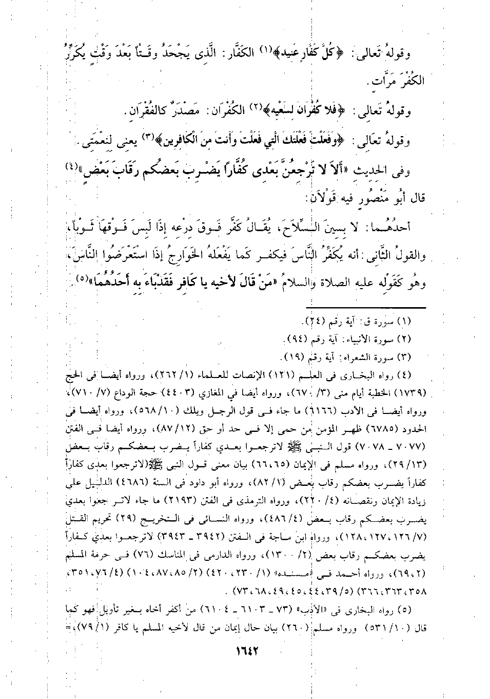 وفي الحديث (ألا لا ترجعن بعدي كفارا يضرب بعضكم رقاب بعض) قال أبو منصور فيه قولان: