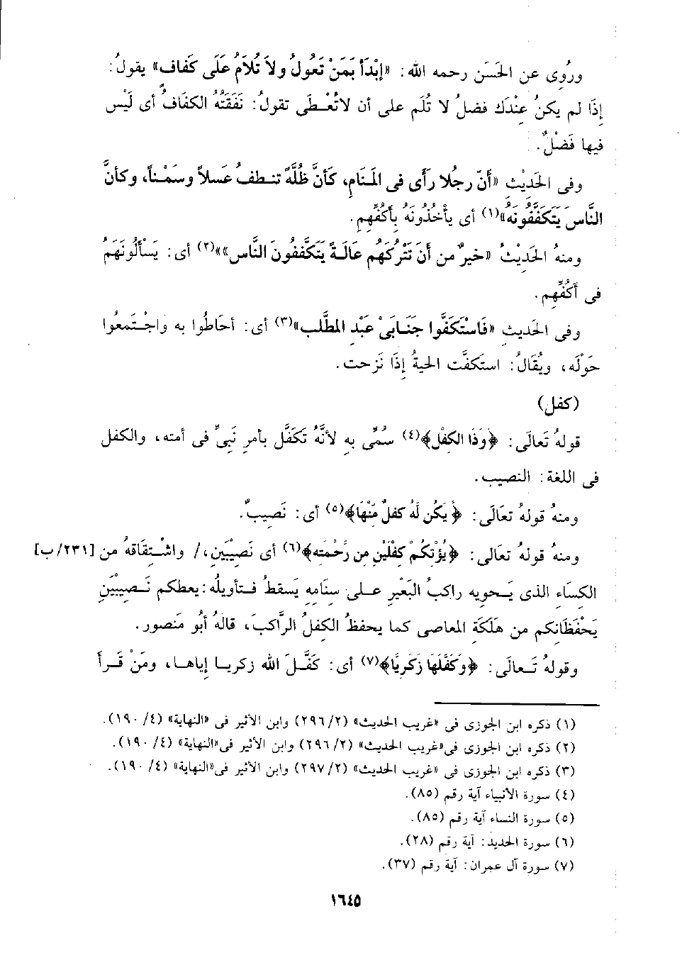 وروي عن الحسن رحمه الله: (إبدأ بمن تعو لولا تلام على كفاف) يقول: إذا لم يكن عندك فضل لا تلم على أن لا تعطى تقول: نفقته الكفاف ليس فيها فضل.