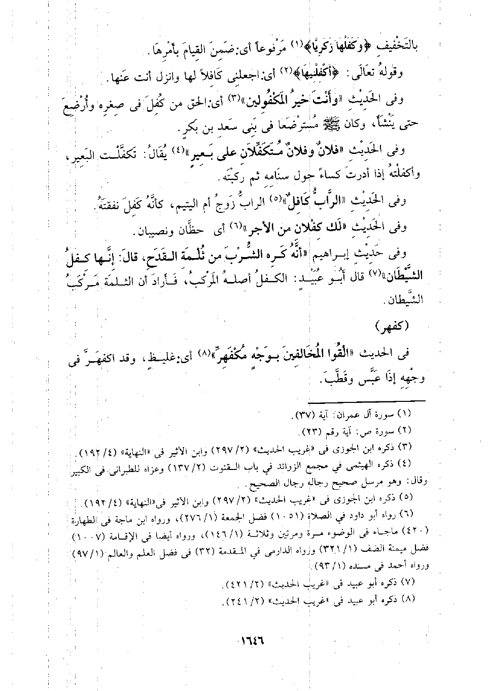 وفي الحديث (فلان وفلان متكفلان على بعير) يقال: تكفلت البعير، وأكفلته إذا أدرت كساء حول سنامه ثم ركبته.