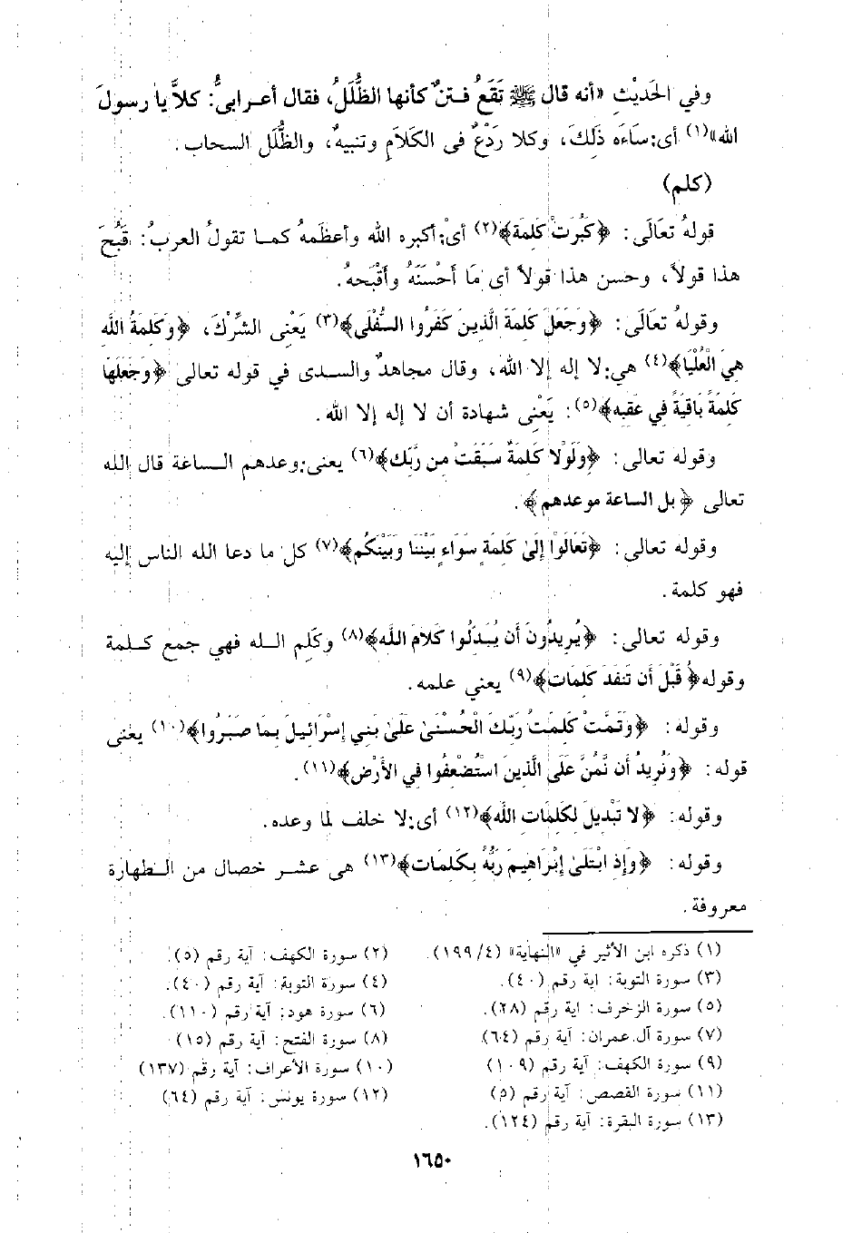 وقوله تعالى: {يريدون أن يبدلوا كلام الله} وكلم الله فهي جمع كلمة وقوله} قبل أن تنفد كلمات} يعني علمه.