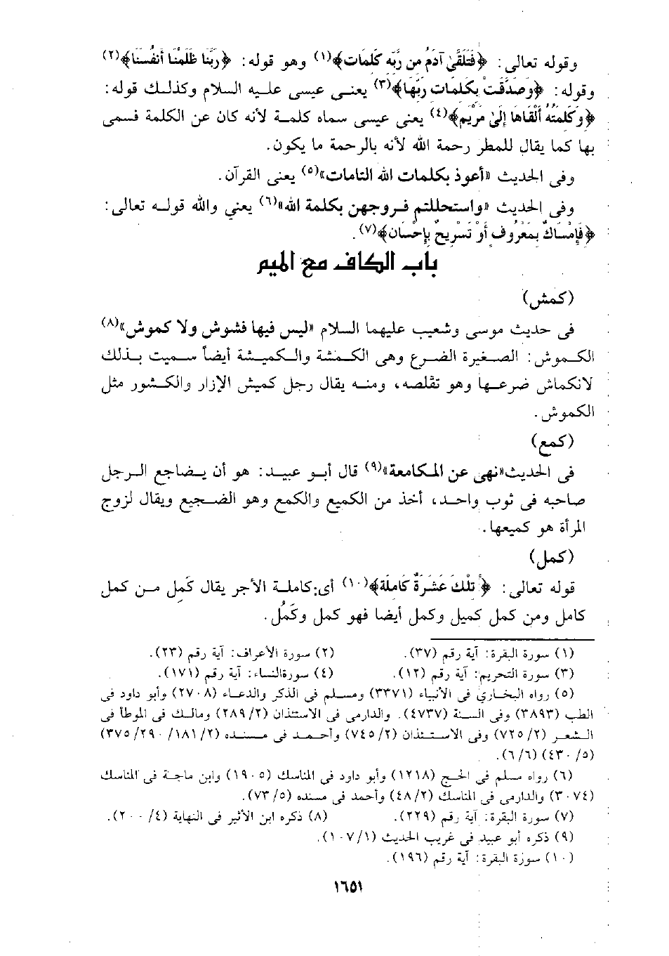 وفي الحديث (أعوذ بكلمات الله التامات) يعني القرآن.